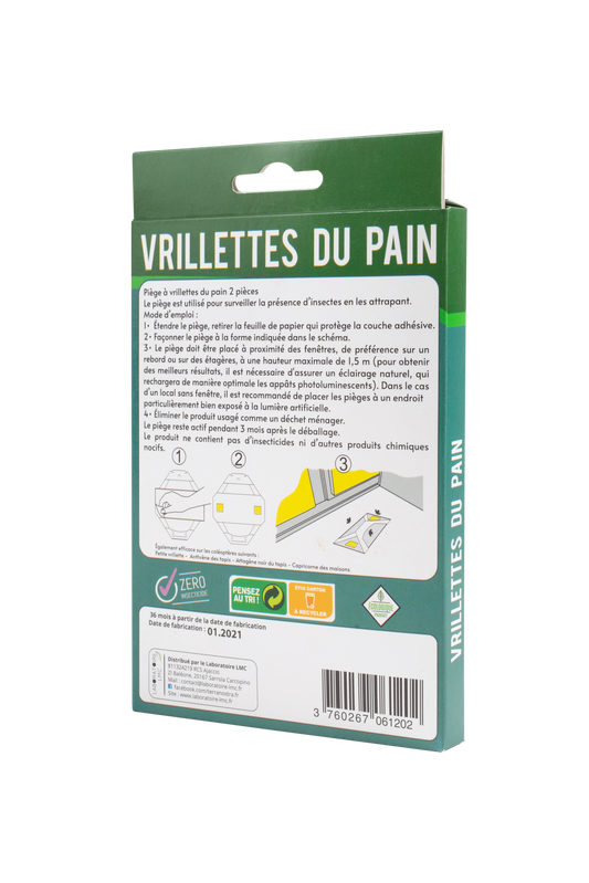 LOT 2 BOITES DE 2 PIEGES - Piège Ecologique Naturel Contre la Vrillette du Pain 1 Boite de 2 PIEGES Plaque attractive Terra Nostra